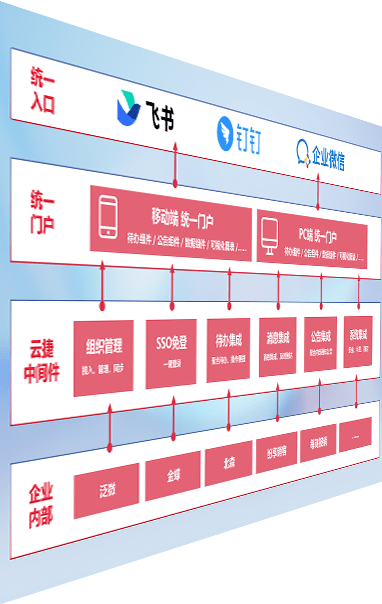对协作平台提供支持服务,,,,支持企业应用与协作平台对接,,,包含组织同步、、消息集成、、、待办集成等。。支持目前主流的协作平台:钉钉、、、、企微和飞书。。